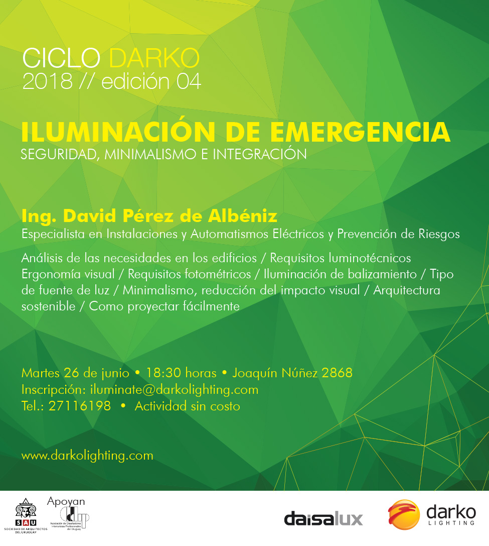Conferencia a cargo del Ing. David Pérez de Albéniz, especialista en instalaciones, automatismos eléctricos y prevención de riesgos. Se realizará el martes 26 de junio, a las 18:30 horas.